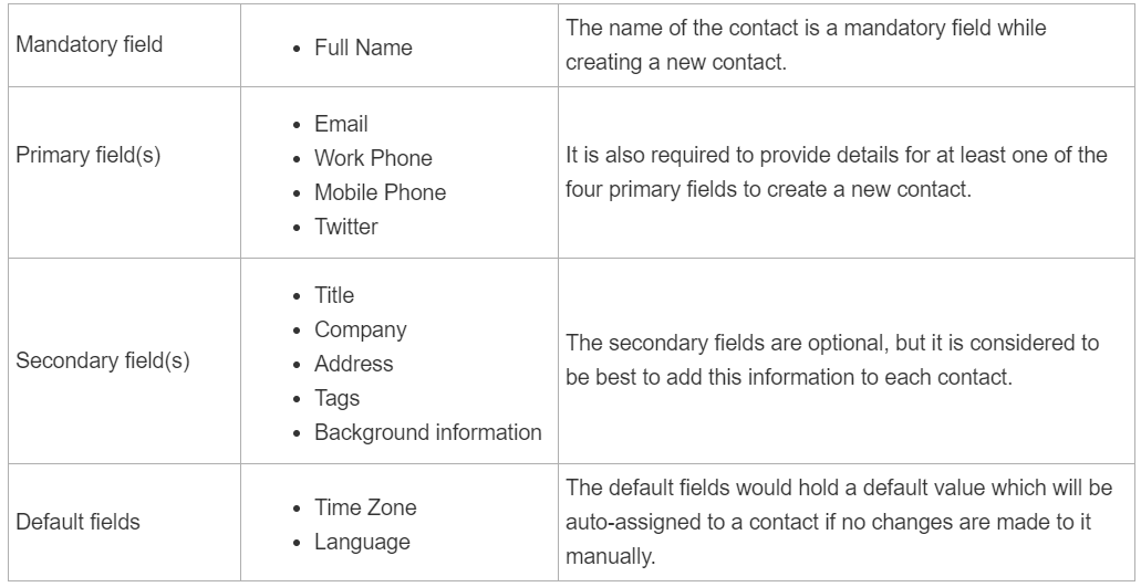 • The default fields would hold a default value which will be auto-assigned to a contact if no changes are made to it manually.